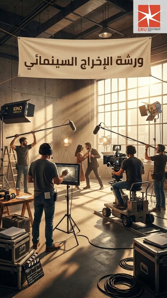 ورشة الإخراج السينمائي هي ورشة عملية تهدف إلى تعريف المشاركين بأساسيات صناعة الفيلم والإخراج السينمائي، بدءًا من كتابة الفكرة وتصميم المشهد، مرورًا بكيفية التعامل مع الكاميرا والإضاءة، وصولًا إلى توجيه الممثلين وتنفيذ مشاهد متكاملة.
