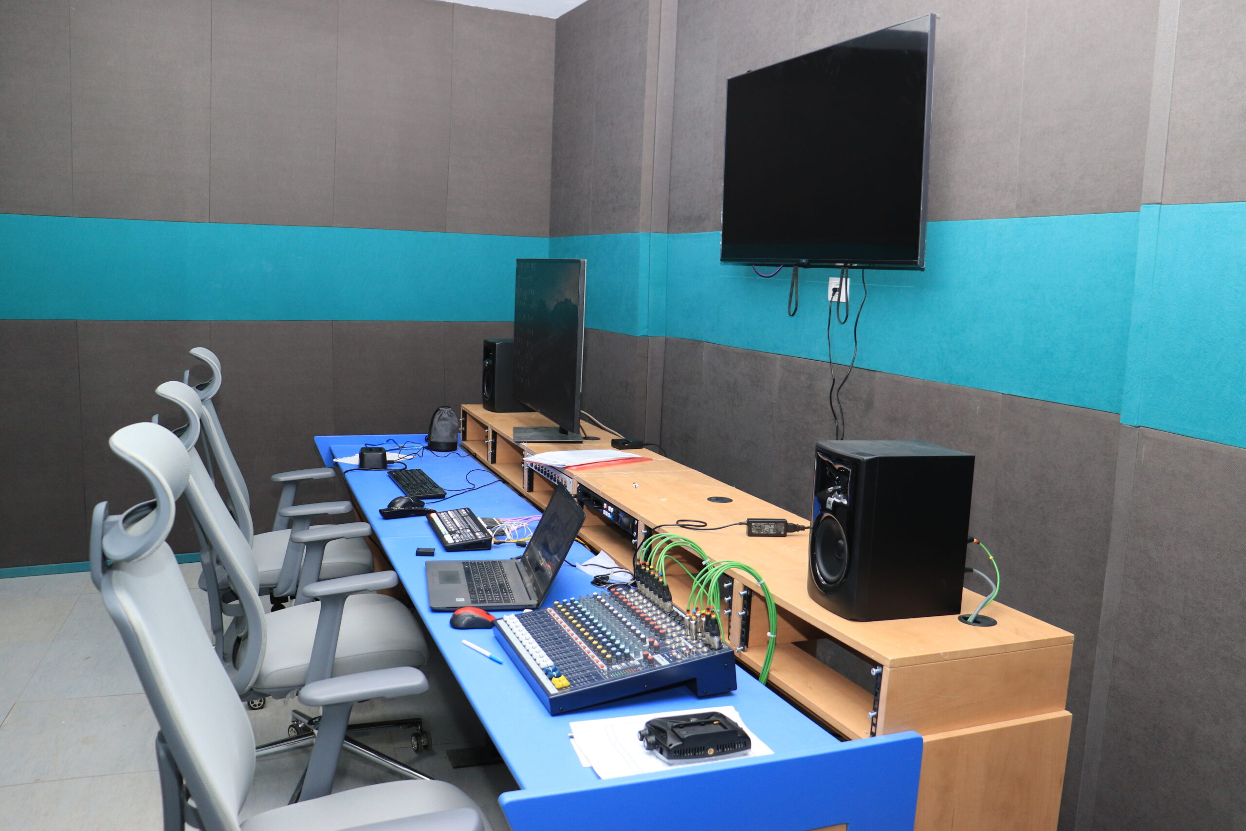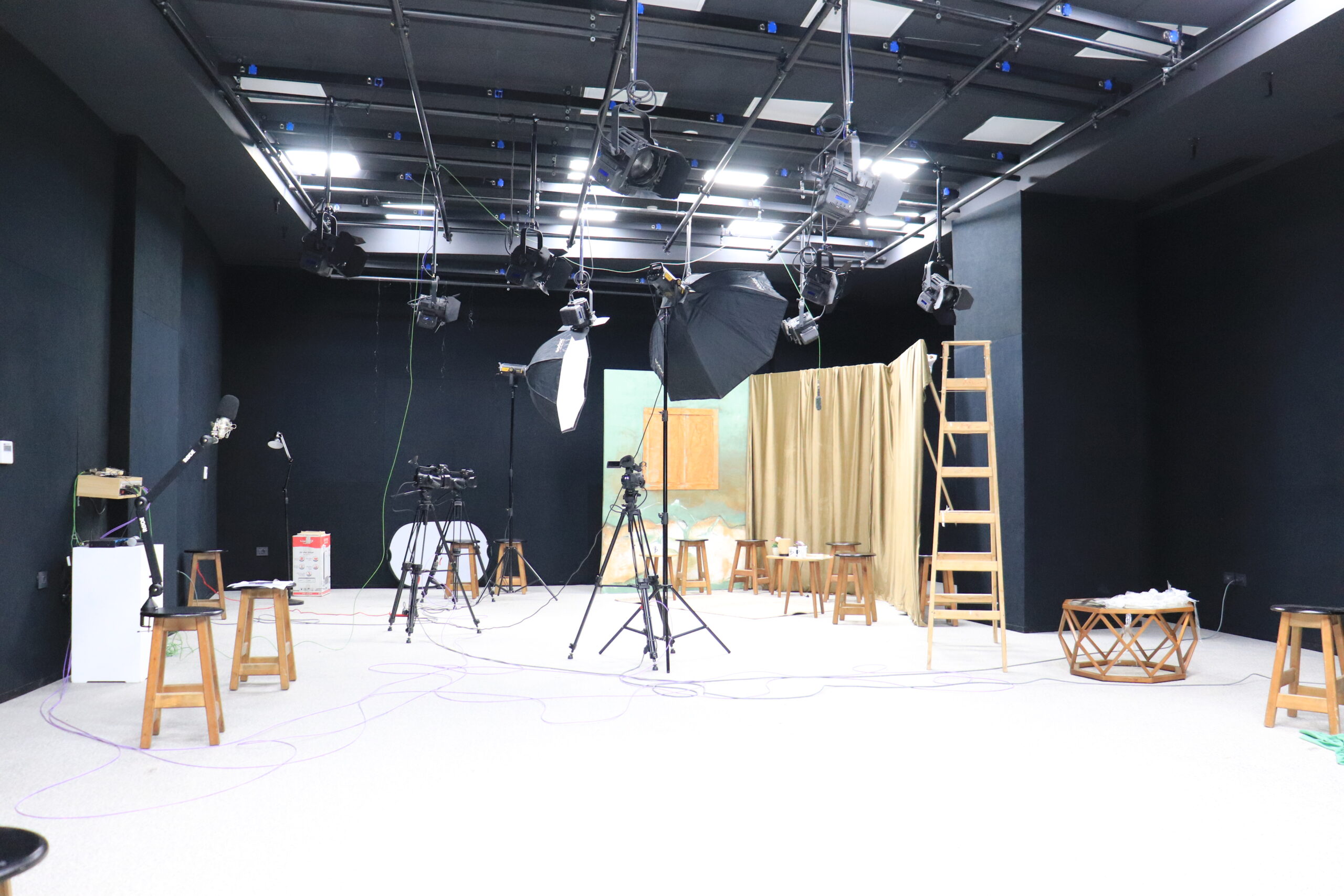 يوفّر استوديو الإنتاج الإعلامي بيئة احترافية مزوّدة بتقنيات متقدّمة للتحرير المرئي والصوتي وصناعة المحتوى الرقمي، مما يتيح للطلاب تنفيذ مشاريعهم الفنية والسينمائية بمعايير عالية.
