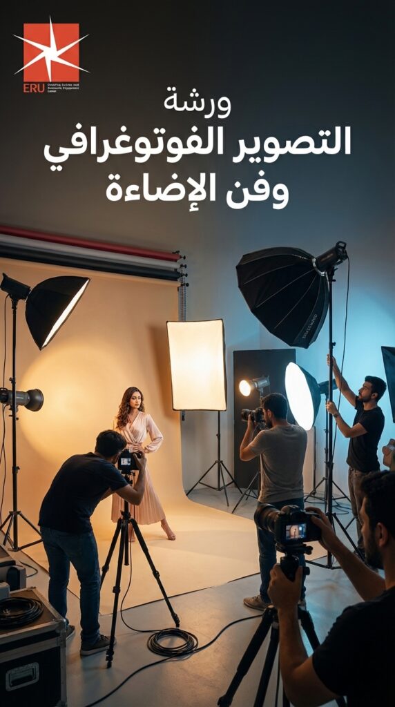 ورشة تطبيقية تُعلّم أساسيات التصوير، وقواعد التكوين، وأنواع الإضاءة، وكيفية توظيف الضوء الطبيعي والصناعي لصناعة صور احترافية صالحة للاستخدام الأكاديمي والفني وعلى منصات التواصل الاجتماعي.