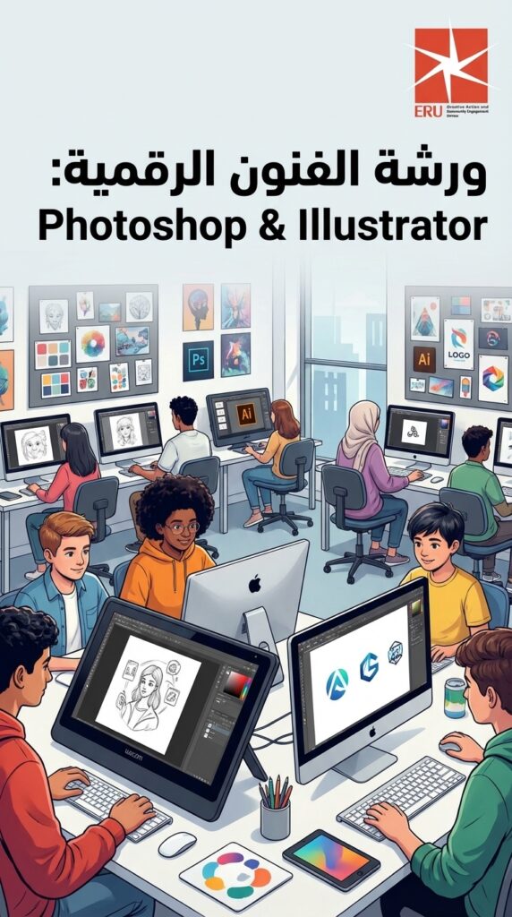 ورشة فوتوشوب وإليستريتور هي ورشة عملية تهدف إلى تعليم أساسيات التصميم الجرافيكي باستخدام أشهر برامج التصميم، مع التركيز على الفهم العملي للأدوات وكيفية استخدامها في تنفيذ تصاميم احترافية. تساعد الورشة المتدرب على تحويل الأفكار إلى تصاميم بصرية واضحة ومؤثرة تصلح للاستخدام الأكاديمي والعملي.
